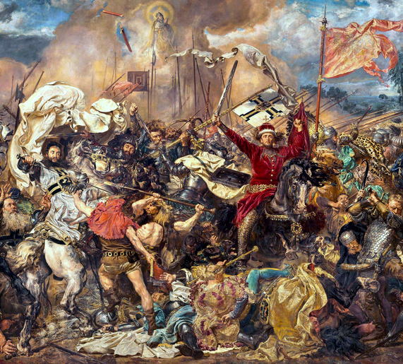 Les exemples les plus marquants furent sans doute les œuvres du peintre Jan Matejko à la fin du XIXe siècle. Resté à Cracovie, il représenta à travers ses œuvres l’histoire polonaise en la glorifiant. Avec une vision patriotique, Matejko utilisa Grunwald comme pilier par excellence de l’histoire polonaise pour affirmer face aux puissances occupantes que la Pologne n’était pas en train de mourir[26]. Déjà renommé de son vivant, sa toile ayant pour sujet Grunwald en 1878 eut un écho considérable dans les milieux polonais.